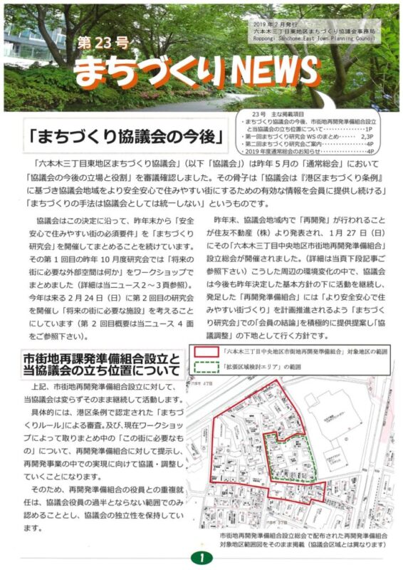 実は、私はこの地区に住まいがある地権者(共同住宅の区分所有)で、今は再開発準備組合の組合員です。ですがそれ以前の、10年以上前からここに存在する「まちづくり協議会」の会員でもあります。この協議会は六本木3丁目3〜5番の地権者と住民によるもので、その発足の目的には『魅力ある街に発展させるための、まちづくりのあり方を研究協議する』とあります。この”意識の盛り上がり”は、隣の街区の再開発(現在TV東京の入居しているグランドタワーなど)の計画立ち上げが契機となって起ったものでした。つまり、当初は”再開発に対して物申す近隣”からスタートしたとも言え、元々再開発を目指した組織ではありません。その後、ユニークな「提案型まちづくりルール」で港区まちづくり条例による第1号の認定を受け、現在に至っています。